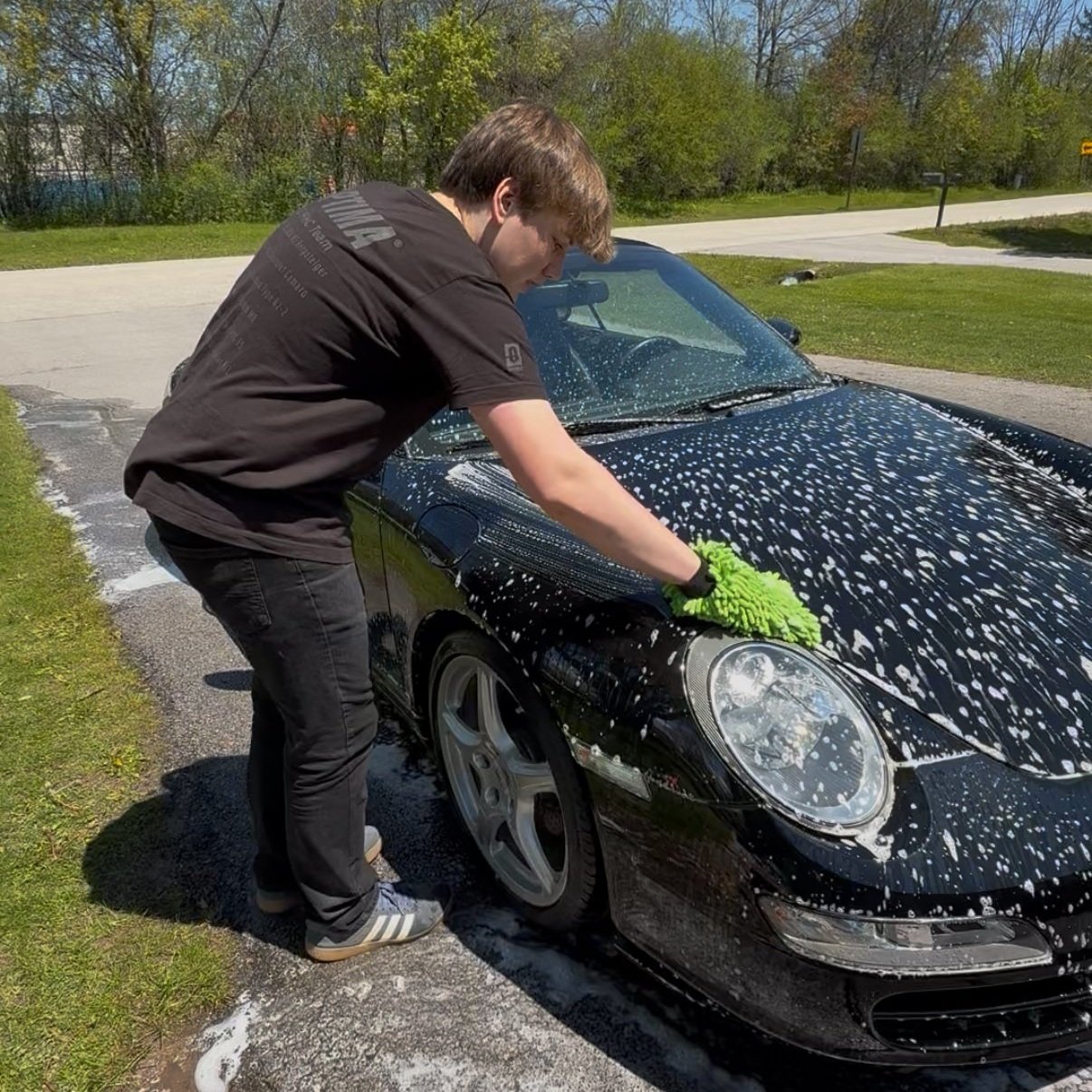 Hand wash of paint, cleaning of windows, Hand wash of wheels and tires, hand dry of all exterior surfaces.